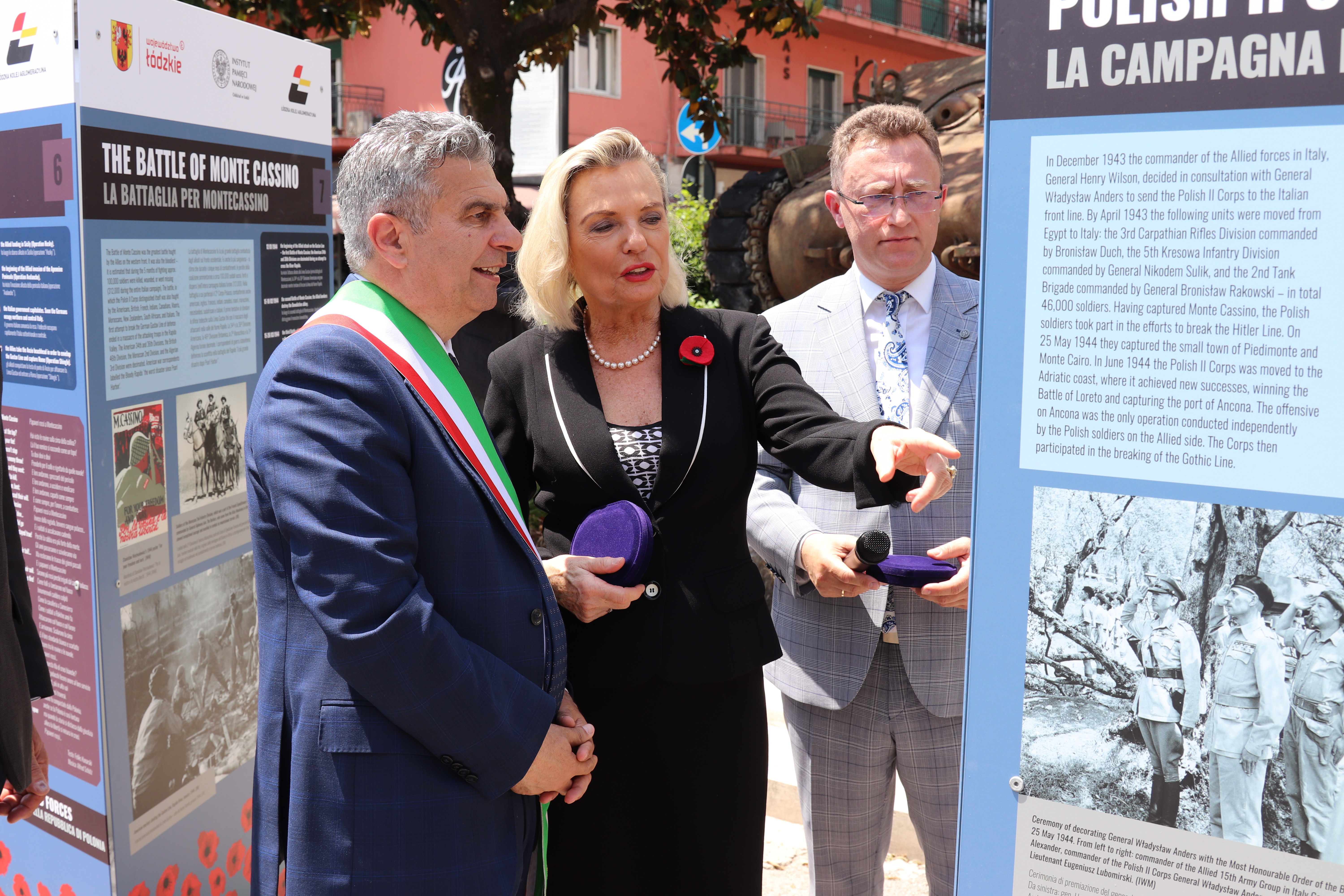 W wydarzeniu wzięli udział Anna Maria Anders - Ambasador Nadzwyczajny i Pełnomocny Rzeczypospolitej Polskiej w Republice Włoskiej i Republice San Marino, Enzo Salera – Burmistrz Cassino, dr hab. Dariusz Rogut – dyrektor łódzkiego Oddziału IPN i Zdzisław Hoffman – dyrektor Regionalnej Organizacji Turystycznej Województwa Łódzkiego.