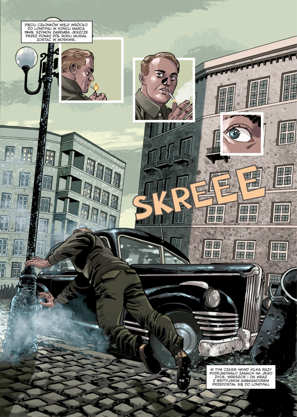 Narracja komiksu zbudowana jest wokół postaci Antoniego Pospieszalskiego, cichociemnego uczestniczącego pod przybranym nazwiskiem w brytyjskiej misji obserwacyjnej „Freston”, pierwszej i jedynej alianckiej misji wojskowej skierowanej do Armii Krajowej w okupowanej przez Niemców Polsce. Bohaterami drugiego planu są żołnierze AK, którzy misję przyjmowali i ochraniali oraz dowódca AK. Pozostająca w zupełnym tle geopolityka jest w istocie zagadnieniem kluczowym tej opowieści, pozwalającym unaocznić młodemu odbiorcy tragiczną sytuację, w jakiej znalazła się Polska w 1945 roku.