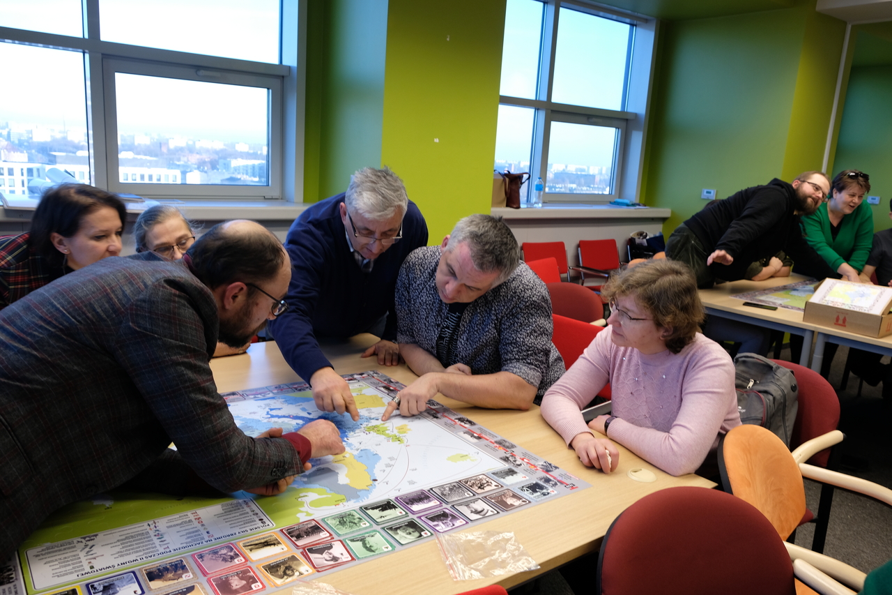 W części warsztatowej spotkania Marzena Kumosińska (IPN) zaprezentowała nowy komiks Operacja „Freston”. Spóźniona aliancka misja i sposoby jego wykorzystania na lekcji, a Grzegorz Nawrot (IPN) prototyp nowej gry edukacyjnej First to fight. Polskie Siły Zbrojne na Zachodzie 1939-1945. Puzzle, memo, opracowywanej przez zespół OBEN.