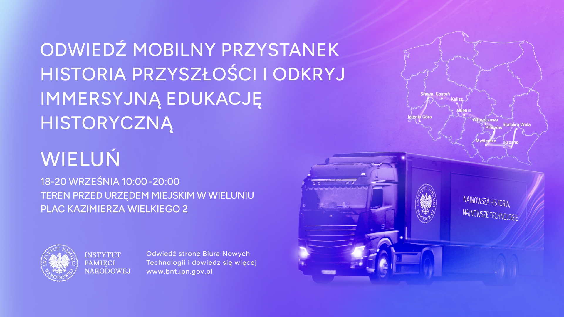 Mobilny Przystanek Historia Przyszłości to miejsce, w którym zupełnie za darmo możesz wziąć udział we wszystkich grach i aplikacjach stworzonych przez Biuro Nowych Technologii IPN. Przystanek odwiedzi aż 10 miejscowości w całej Polsce!