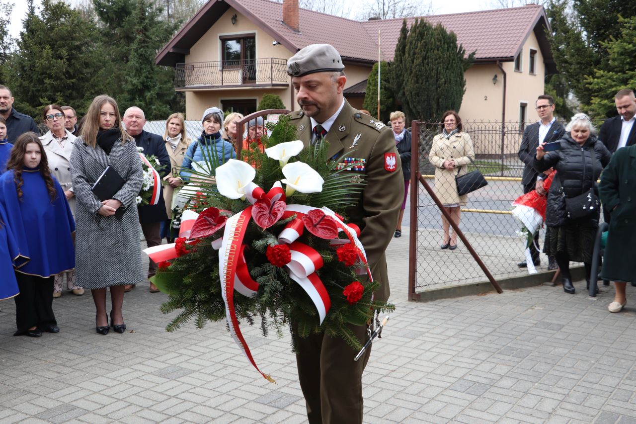 Uroczystości rozpoczęła Msza Święta w intencji ofiar Zbrodni Katyńskiej, następnie uczestnicy przeszli do Szkoły Podstawowej im. Królowej Jadwigi, na fasadzie której umieszczono tablicę pamiątkową.