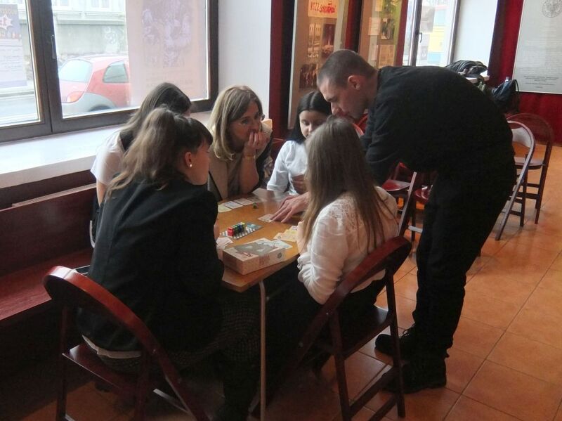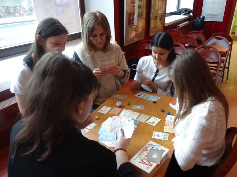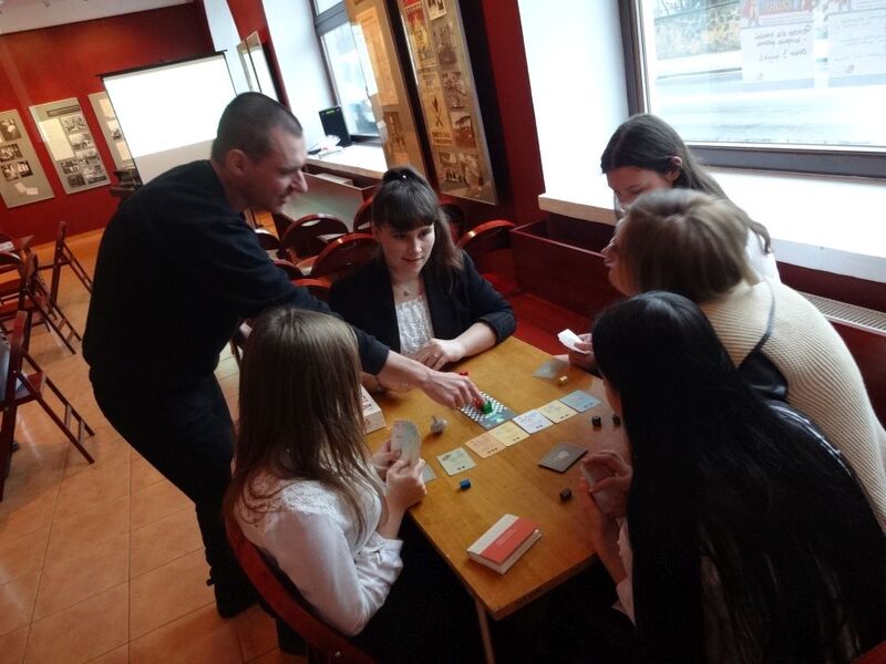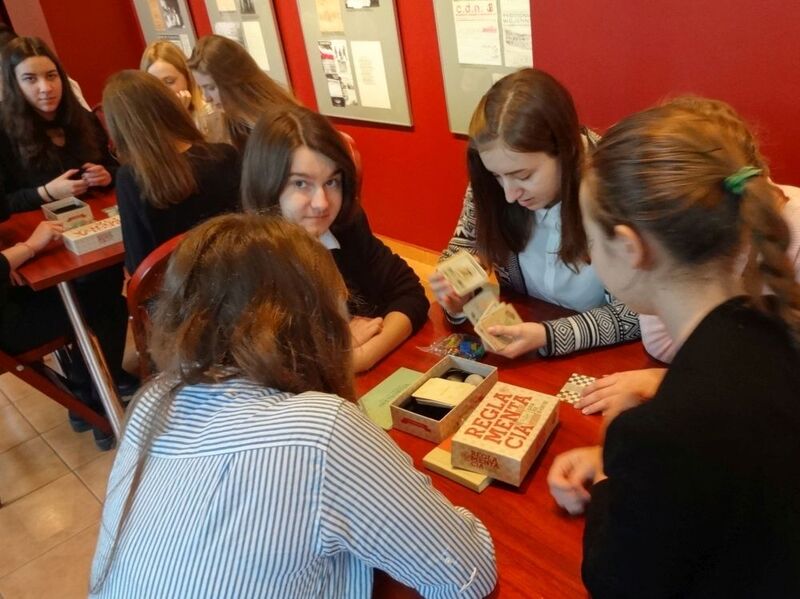 Dzięki grze planszowej „Reglamentacja” uczestnicy zajęć poznawali jeden z najbardziej wymownych symboli upadku peerelowskiej gospodarki. Mierząc się z kartkową rzeczywistością i starając zdobyć – w celu zrobienia zakupów przed wizytą gości – kartki na cukier, mięso oraz inne reglamentowane dobra, uczniowie przekonali się, że życie codzienne w stanie wojennym niosło za sobą również bardzo prozaiczne wyzwania.