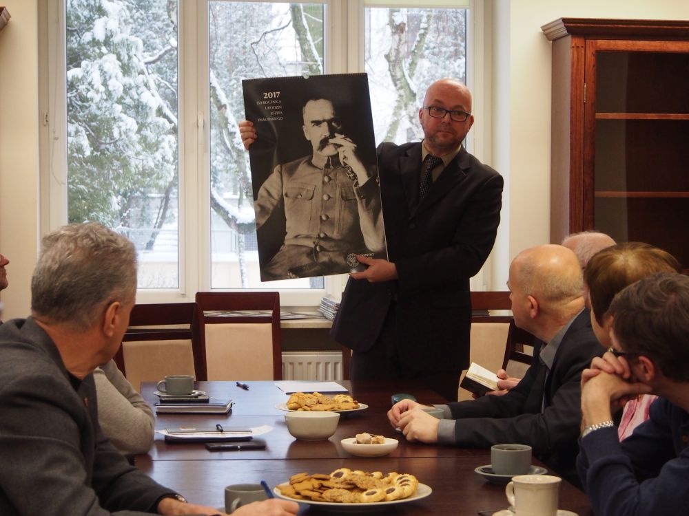 Wraz z życzeniami noworocznymi dr Paweł Perzyna przekazał uczestnikom spotkania wydany przez Instytut kalendarz poświęcony Józefowi Piłsudskiemu.