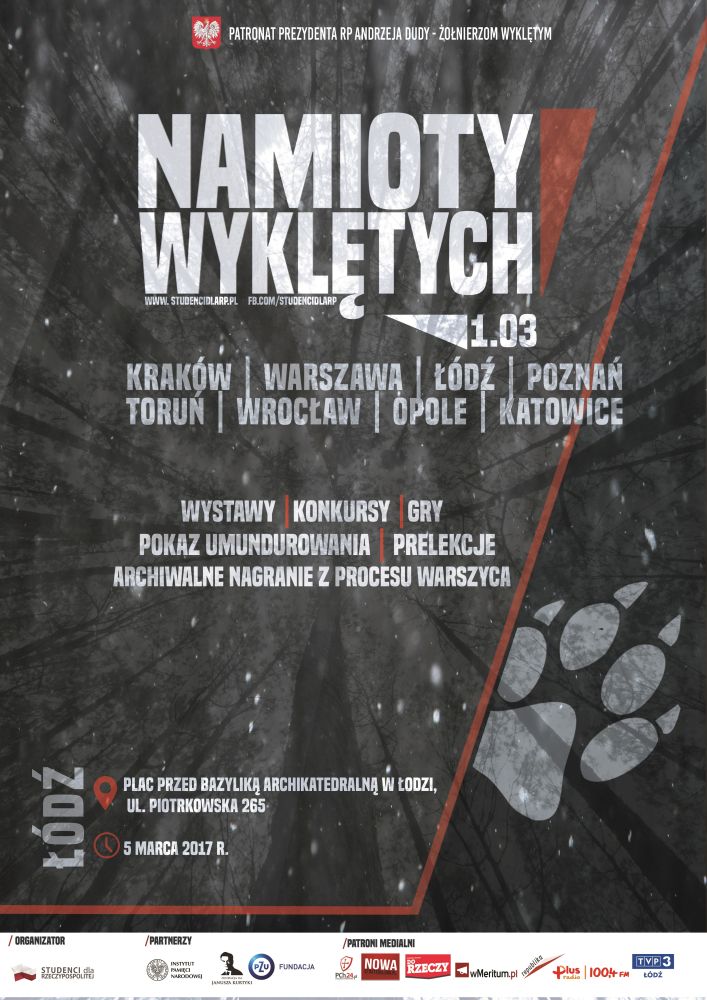 Patronat nad tegoroczną edycją łódzkich „Namiotów Wyklętych” objęła również Fundacja im. Janusza Kurtyki, wsparcia medialnego udzieliły TVP3 Łódź i Radio Plus Łódź.